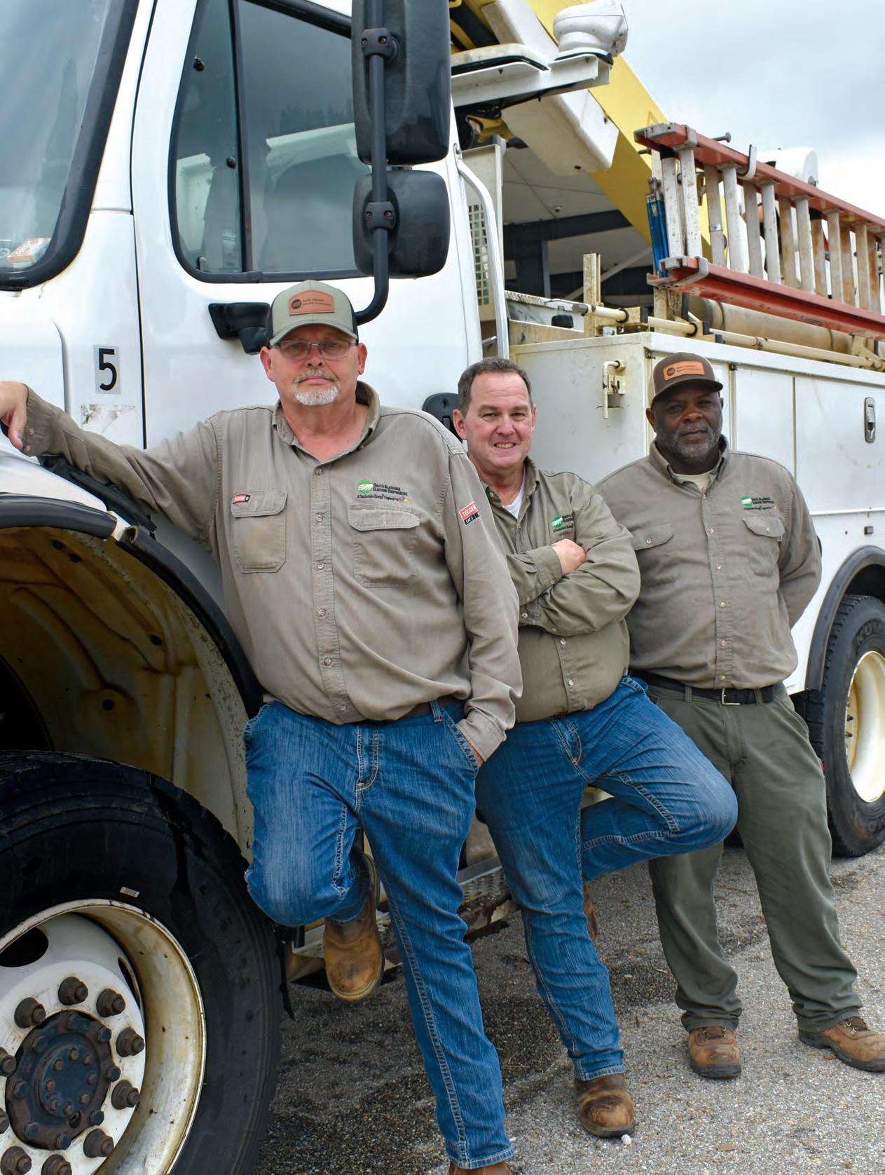 April is Lineman Appreciation Month and honors the people who keep the power on. SAEC foremen, from left, Tony Greer and Blane Senn, and longtime lineman Darrell Foster share their experiences. See story Page 6.
