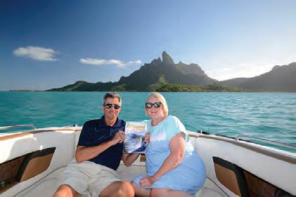 Paula and Bobby Pitre, members of Baldwin EMC, brought along their magazine to Bora Bora, an island in the South Pacific and part of the Society Islands of French Polynesia. The photo was taken on a boat in the Bora Bora lagoon with Mount Otemanu (an extinct volcano) in the background.