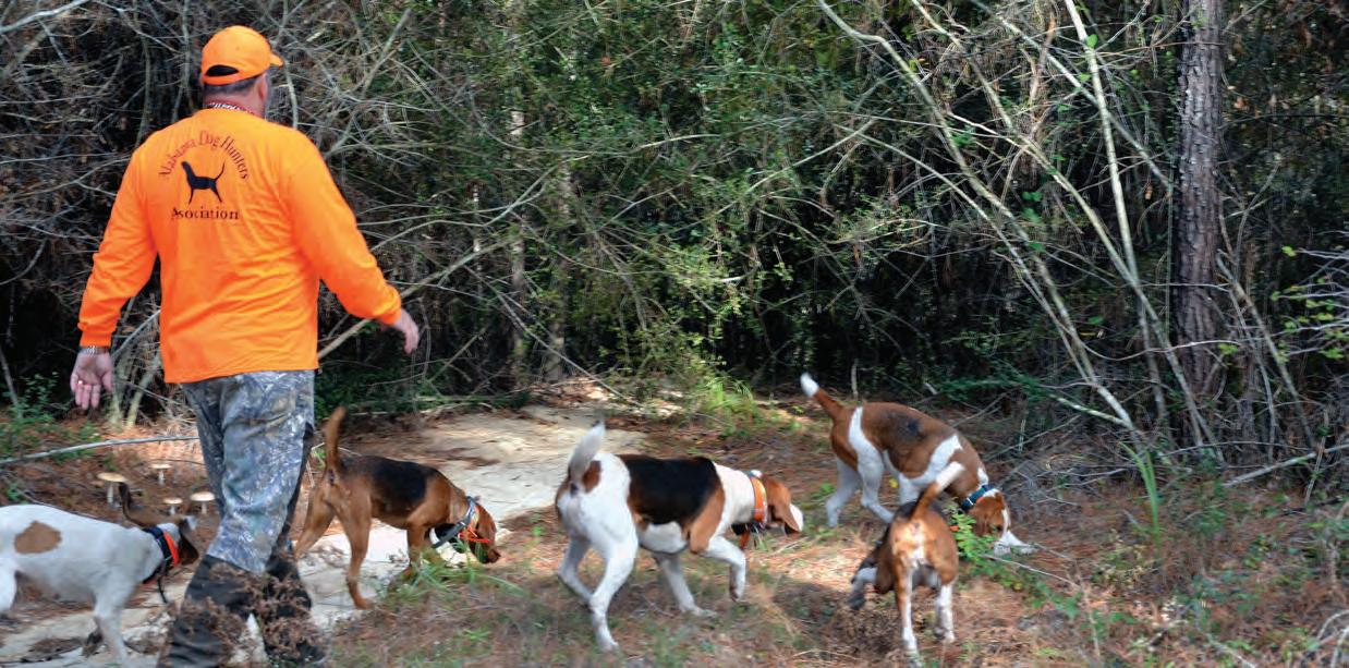 The dogs pick up a hot deer scent while hunting with Lonnie Miller of the Alabama Dog Hunters Association during a hunt in the Geneva State Forest near Florala, Ala.