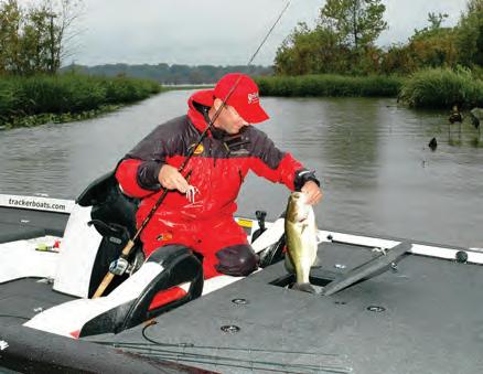 Most people pick their days to fish. Pros, like Kevin VanDam, must fish in all kinds of weather. Here he lands a bass he caught in the rain.