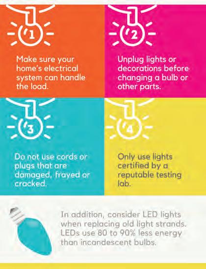 The holidays are a fun, festive time of year! But this is also a time when we typically use more electricity at home because the weather is colder and we’re home for the holiday season. Read the e ciency tips below, then find and circle the bolded words in the puzzle.