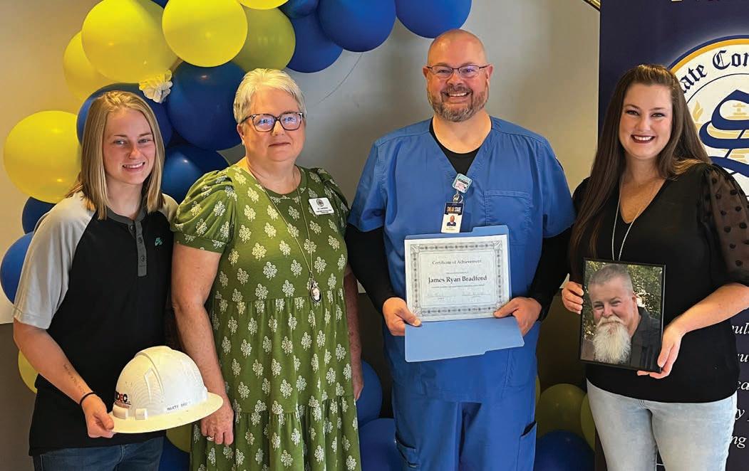 With the fall season approaching, the cooler breeze brings with it a sense of sadness for the employees of MDEC. A little over two years have gone by since the passing of staking engineer Marty Brock. e Brock family keeps his memory alive by awarding a scholarship to a Snead State Community College Nursing student. Lisa Brock, Marty’s wife, is the Director of Health Sciences at SSCC. Lisa along with their two daughters, Kari and Anna, go through several applications and carefully pick the student who stands out the most. is year Ryan Bradford has been chosen.