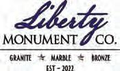 7315 County Road 17 • Woodville, AL 35776 256-805-0153 • macy@libertymonument.net Serving North AL, Southern TN, and Northwest GA. We offer traditional sandblast and laser etched monuments. Onsite cemetery engraving. Check