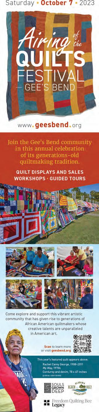 20 54 VOL. 76 NO. 9 SEPTEMBER 2023 DEPARTMENTS 11 Spotlight 29 Around Alabama 44 Cook of the Month 42 Outdoors 43 Fish & Game Forecast 54 Cup o’ Joe ONLINE: alabamaliving.coop 30 SEPTEMBER 2023 3 WE WANT TO HEAR FROM YOU! ONLINE: www.alabamaliving.coop EMAIL: letters@alabamaliving.coop MAIL: Al abama Living 340 Technacenter Drive Montgomery, AL 36117 FEATURES