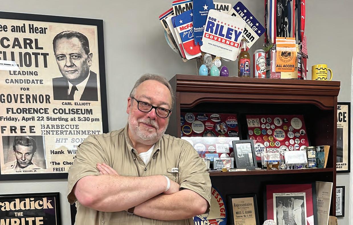 Political advisor David Azbell has been collecting political memorabilia for 40 years. His collection now fills several rooms at his Montgomery office and he admits “it’s a bit out of control.”