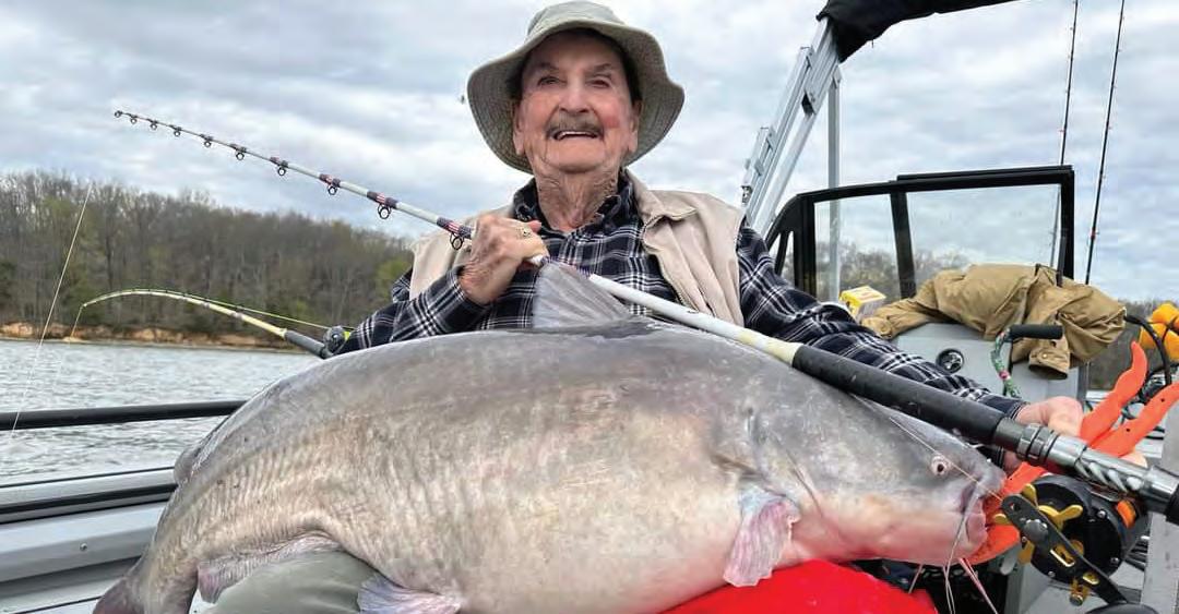 Rudy McCarley with a 53-pound catfish he caught in the Tennessee River.