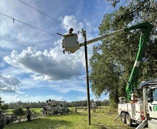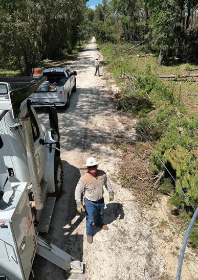 On the morning of August 31, an eight-person crew from Joe Wheeler EMC traveled to Live Oak, Florida and worked with roughly 1,000 people from public power and electric cooperatives across the country to assist Suwannee Valley Electric Cooperative in restoring power to their service territory, where almost 100% of their member base was without power. e weekend following August 31, crews restored power to 7,000 people and continued to work the following week in bringing the whole area back online.