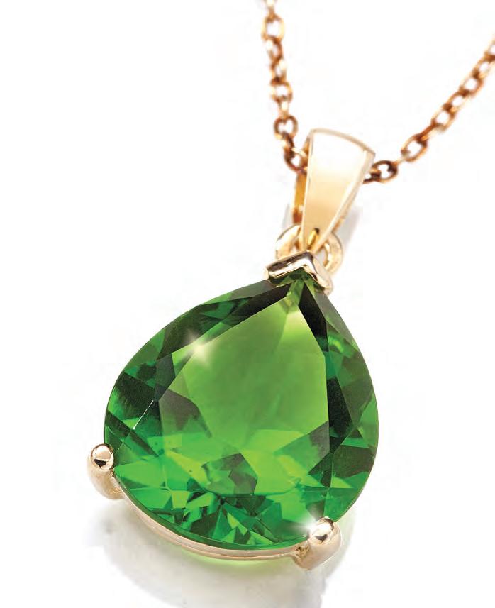 Created from heated volcanic rock from Mount St. Helens, this brilliant green gemstone now shines in a spectacular 6½-carat pear-cut pendant, set in a luxurious gold-finished setting and suspended from an 18" chain.