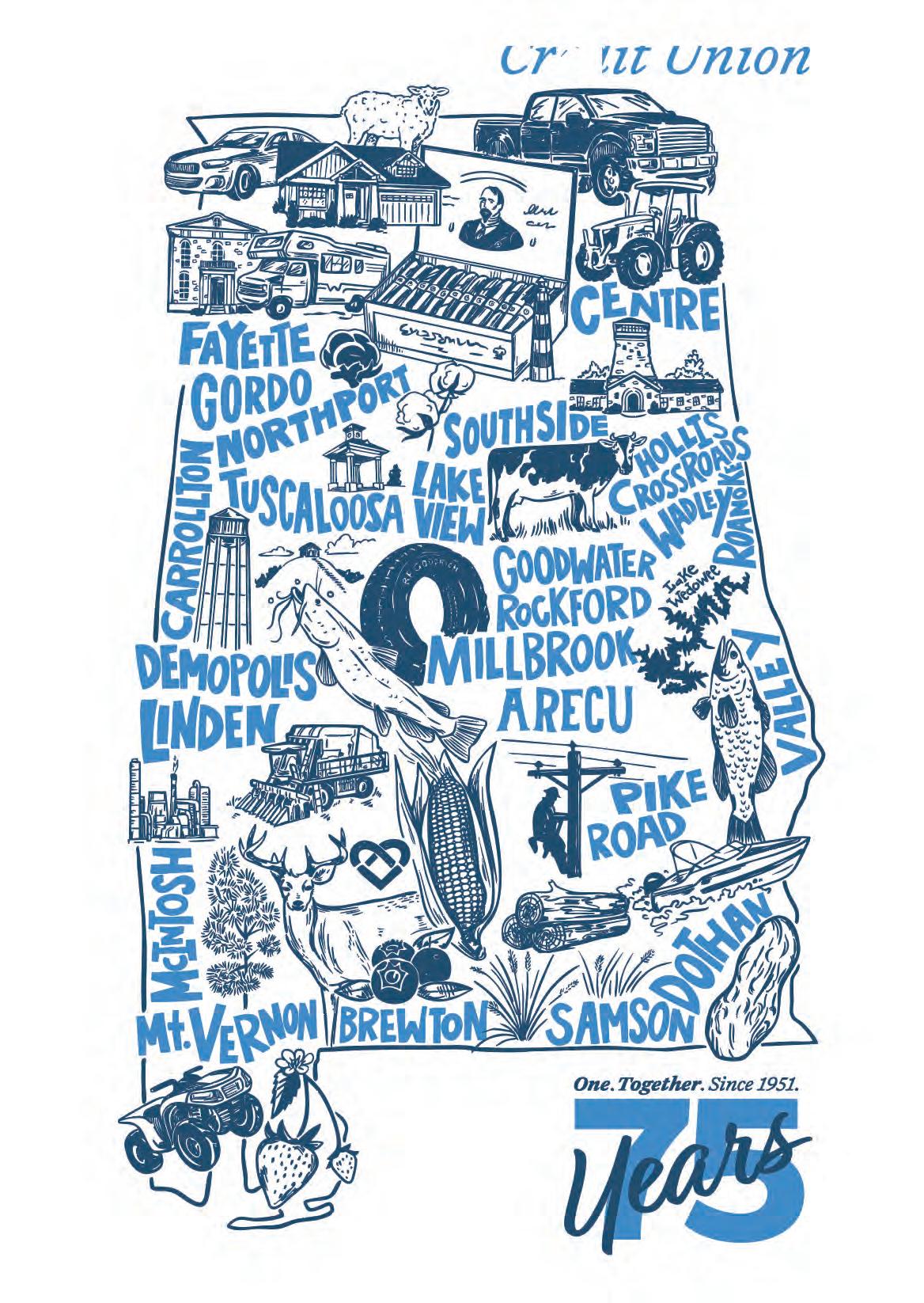 ALABAMA LIVING is delivered to some 450,000 Alabama families and businesses, which are members of 22 not-for-pro t, consumer-owned, locally directed and taxpaying electric cooperatives. Subscriptions are $15 a year for individuals not subscribing through participating Alabama electric cooperatives. Alabama Living (USPS 029-920) is published monthly by the Alabama Rural Electric Association of Cooperatives. Periodicals postage paid at Montgomery, Alabama, and at additional mailing o ce.