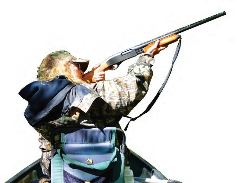 Alabama sportsmen can shoot game from any humanpowered craft. With a small boat, hunters can go where many people cannot go. Small children struggle to crash through impenetrable thickets or deep gooey mud. Often, swamp hunters must wade through water too deep for