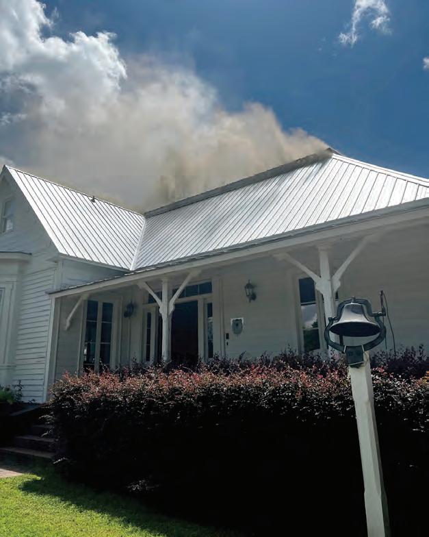 My nephew borrowed an extra set of their gear, and he, Hugh Dollar and Charles Thomas went upstairs to reach the attic, assisted by others who helped with the hose and manned the truck. As they were doing this, I heard another siren as the Greenville Fire Department (11 miles away) came blazing up the drive in their fire engine. Central VFD had put in a request for assistance from Greenville FD, and they immediately answered. A special thank you to the Greenville Fire Depart-