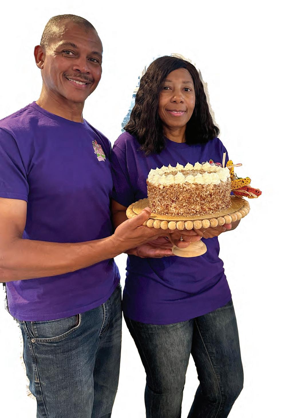 Quinton and Joni Harris, manager and owner of KayBri Desserts, hold one of Joni’s fresh-baked carrot cakes. Read more about this Wilcox County-based business on Page 30.