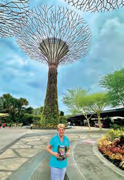Lynda Turner of Montgomery, a member of Dixie EC, took an ocean cruise to the Southeast Asian countries of Indonesia, Singapore, Malaysia and Thailand. She is holding her Alabama Living in the Gardens by the Bay in Singapore.