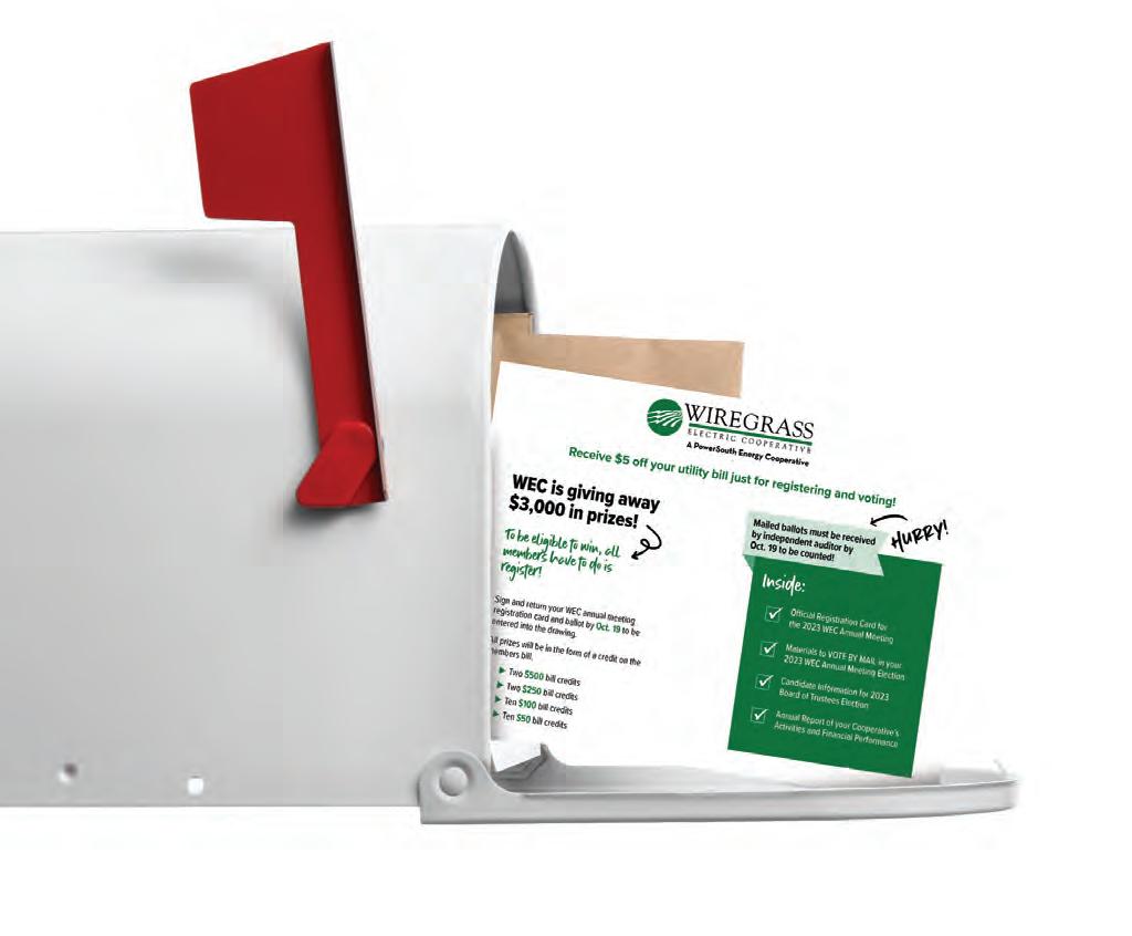 Look out for the Wiregrass Electric Cooperative 2023 Annual Meeting packet, arriving in your mailbox soon. This packet is your guide to understanding what we have achieved together in the past year and where WEC is heading next. It includes:
