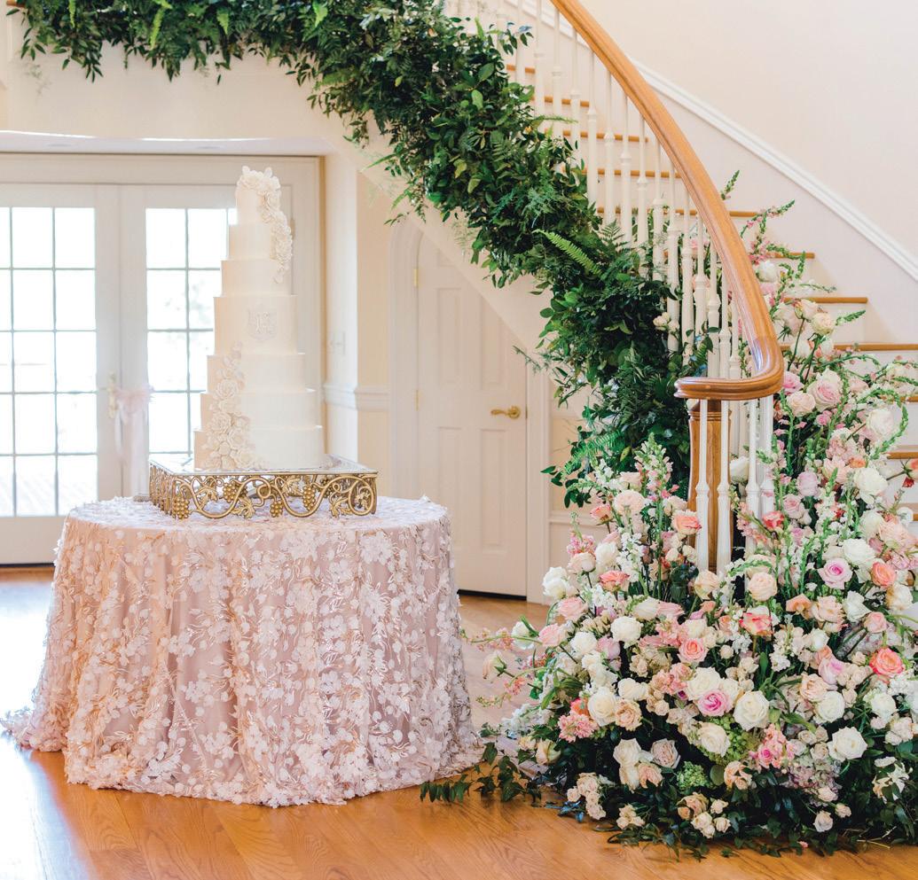 Cake: Sukar Bakes Floral Design: Jubilee Flowers Fairhope Linen: Stradley Davidson Location: Fairhope’s Storybook Castles See more on pages: 134-138