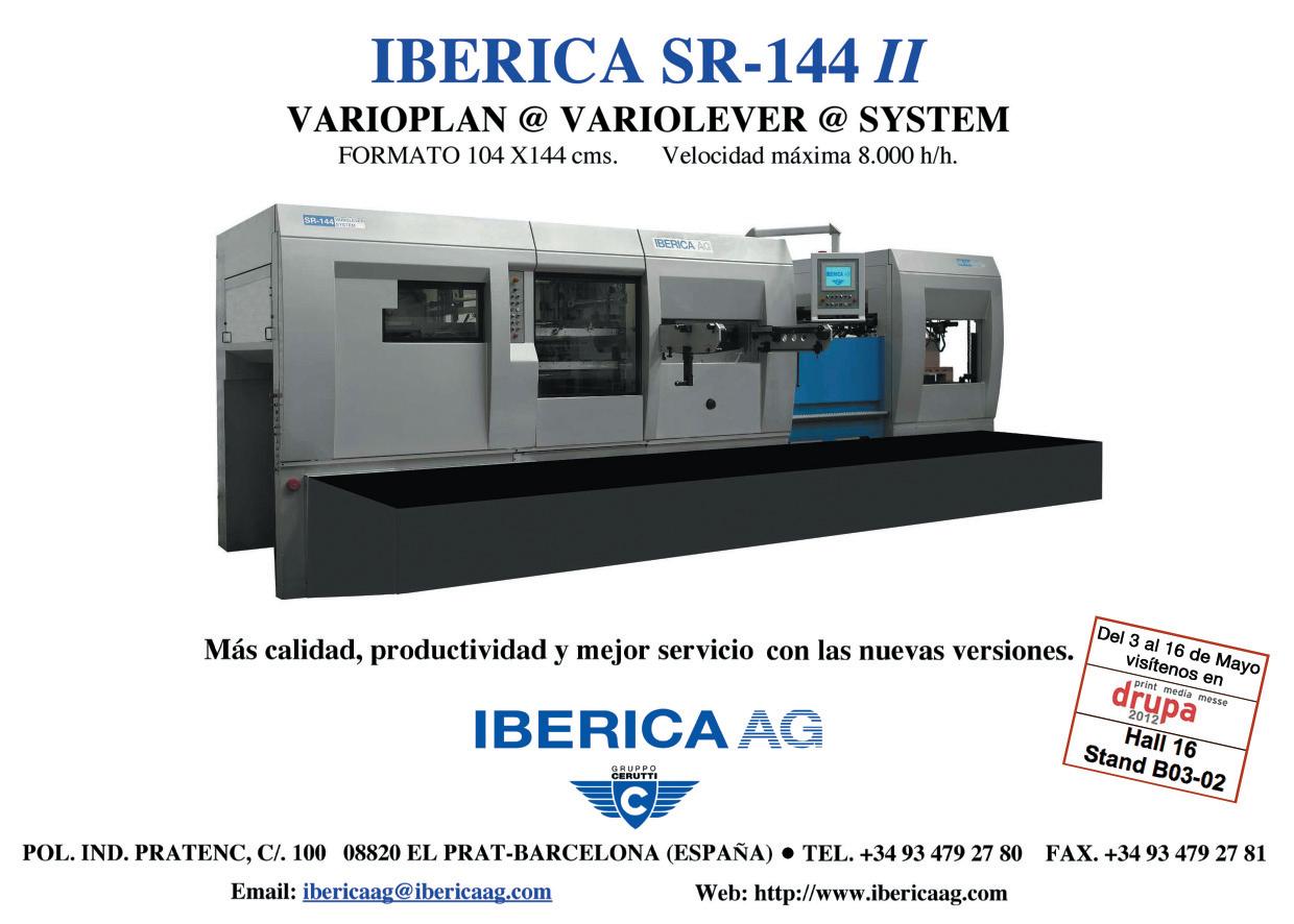 SUMARIO TECNOLOGÍA espacio drupa Los miembros de PrintCity presentan sus novedades en la conferencia predrupa · · 6 PAPEL ACTUAL Torraspapel colabora en la restauración de la ribera del río Tajo· · · · · · · · · · · · 12 M-real cambia su nombre a Metsä Board· · · · · · · · · · · · · · · · · · · · · · · · 14 El Grupo Lecta publica su nuevo Informe Ambiental · · · · · · · · · · · · · · · · · · 16 NOTICIAS · · · · · · · · · · · · · · · · · · · · · · · · · · · · · · · · · · · · · · · · 18 IMPRESIÓN ACTUAL Instalaciones en el mundo de la Speedmaster XL 145/XL 162 · · · · · · · · · · · · · 20 Nuevos avances técnicos para la tecnología iCTP PlateWriter· · · · · · · · · · · · · 22 Un inversor británico adquiere la división de hojas de manroland · · · · · · · · · · · 24 Nueva rotativa Goss Universal instalada en el periódico Guangming · · · · · · · · · 26 Tintaprint, 10 años de prestigio · · · · · · · · · · · · · · · · · · · · · · · · · · · · · 28 El Chicago Tribune y QuadTech: La tecnología del control del color mundial · · · · · 30 NOTICIAS · · · · · · · · · · · · · · · · · · · · · · · · · · · · · · · · · · · · · · · · 32 IMPRESIÓN DIGITAL ACTUAL Open House Digital en las instalaciones de Hartmann · · · · · · · · · · · · · · · · · 34 Canon recibe seis Premios BEST 2011 de BERTL. . . . . . . . . . . . . . . . . . . . 38 La tecnología EFI Fiery y la impresora digital Konica Minolta: Combinación ideal · · · 40 Xerox nombra a Diego Hervás vicepresidente senior de Artes Gráficas para Europa · 42 Nuevo centro Océ "Experiencia de Cliente en Alta Producción · · · · · · · · · · · · 44 iStockphoto & Thinkstock en Fespa · · · · · · · · · · · · · · · · · · · · · · · · · · 46 ACABADOS ACTUAL Educar se escribe con R de Rubio · · · · · · · · · · · · · · · · · · · · · · · · · · · 48 Müller Martini: Cómo las empresas gráficas mejoran su rentabilidad · · · · · · · · · 52 POLAR con báscula de contaje nueva · · · · · · · · · · · · · · · · · · · · · · · · · 54 ENVASES ACTUAL Tres Bobst Expertcut 106 PER para colordruck · · · · · · · · · · · · · · · · · · · · 56 ACTIVIDAD INSTITUCIONAL ACTUAL Hispack localiza compradores para promover exportaciones · · · · · · · · · · · · · 61