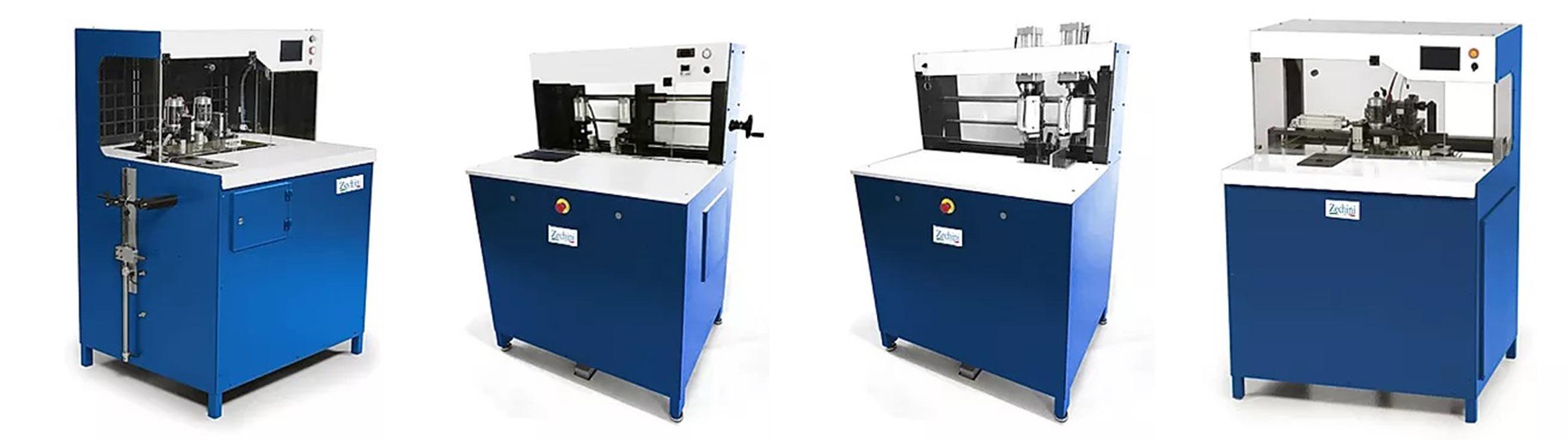 La gama se compone de 4 máquinas: La Zagor para redondear esquinas de cubiertas, la Phantom para cortar o redondear esquinas, la Guizzo que troquela, inserta, corta y encola y la Asso que aplica bucles para bolígrafos.