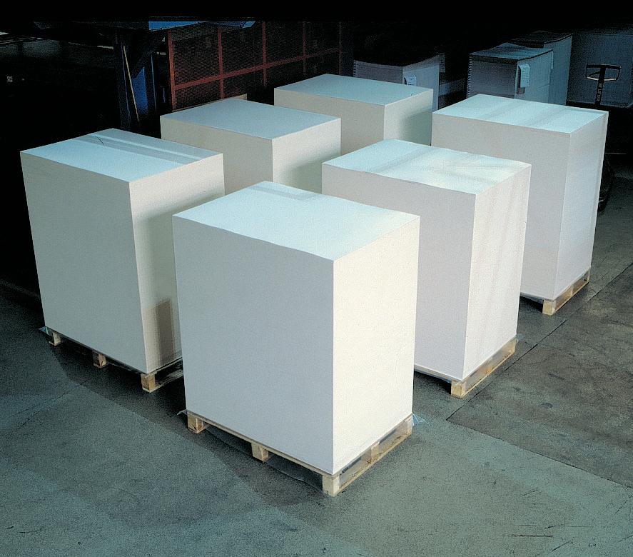 pliego máx. 760 x 1060 mm, rendimiento de producción hasta 9000 pliegos/h) realizó dos pedidos de corte y forma diferentes para los sectores alimentario y farmacéutico.