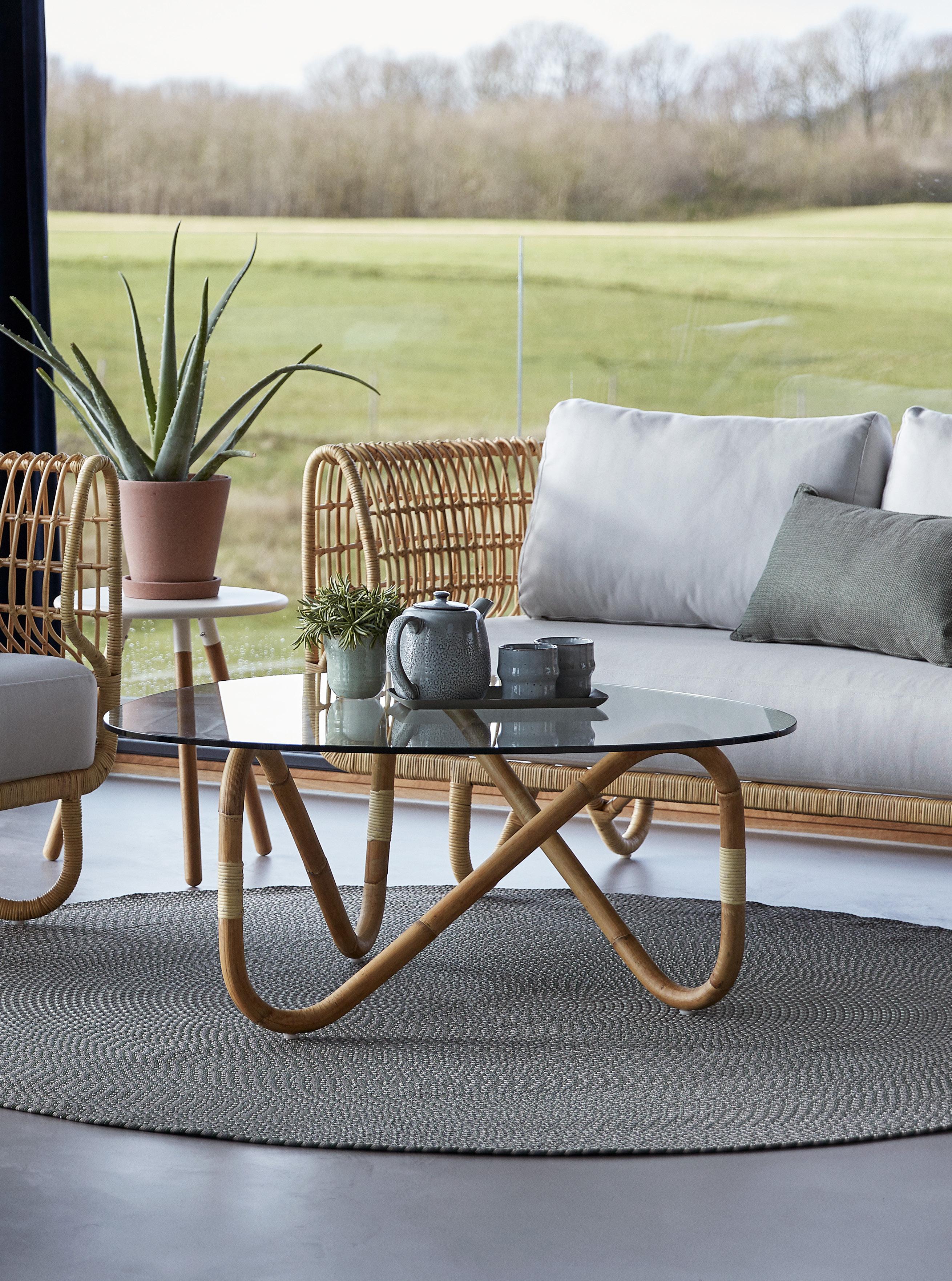 Wavecoffeetable/CirclecarpetNest is a combination of a classic and modern look made with craftsmanship and having comfort as the focal point. The design facilitates style and ambience wherever the lounge furniture is included. The series comes in both an indoor and an outdoor version. The indoor version is bent in the beautiful natural rattan and comes with many different possibilities of cushions.