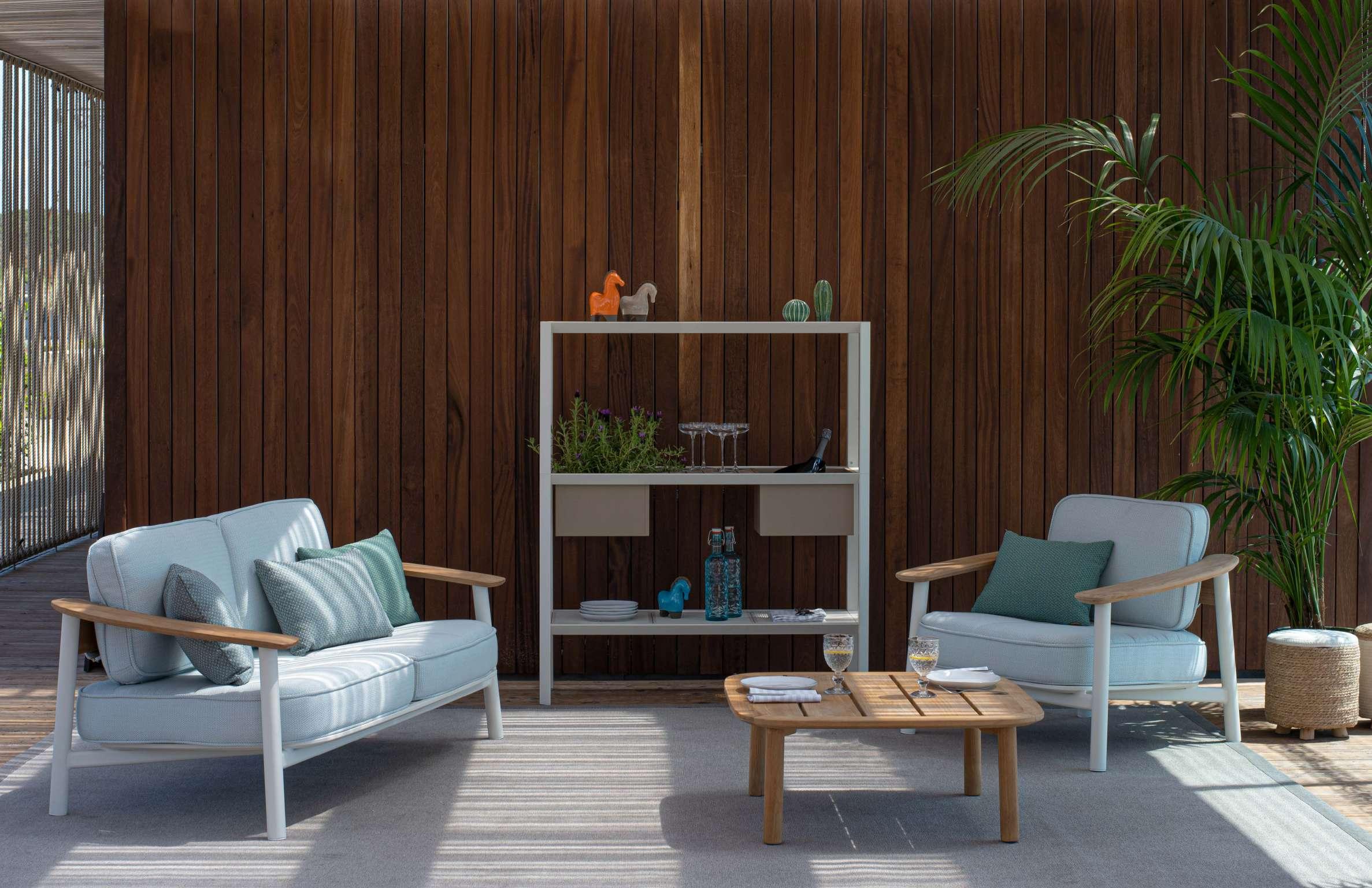 La collezione Twins racchiude due versioni gemelle: una interamente in teak e l’altra un interessante material-mix tra il teak e l’alluminio, sintesi perfetta della capacità progettuale del designer e il saper fare di EMU. Una collezione di sedute, tavoli e divani che annulla confini tra esterno ed interno, la cui unicità permette di creare i più svariati abbinamenti sia tra le due versioni che con le altre collezioni EMU.