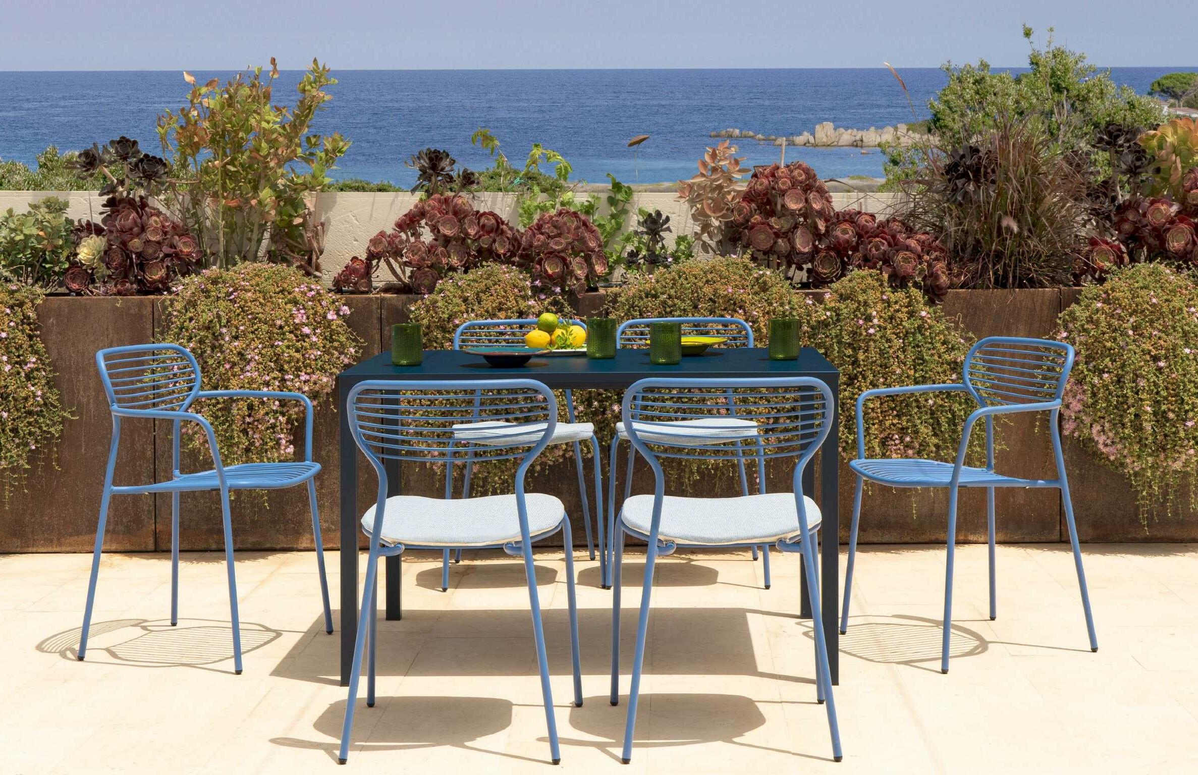 Welcoming shapes and wide dimensions characterize the Terramare collection by Studio ChiaramonteMarin, ideal for cosy and personal settings both indoors and outdoors. A complete range of furniture for both dining and living areas, completed by a smart table.