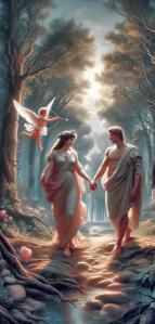 Cupid is often portrayed on Valentine’s Day cards as a naked cherub launching arrows of love at unsuspecting lovers. But the Roman God Cupid has his roots in Greek mythology as the Greek god of love, Eros. Accounts of his birth vary; some say he is the son of Nyx and Erebus; others, of