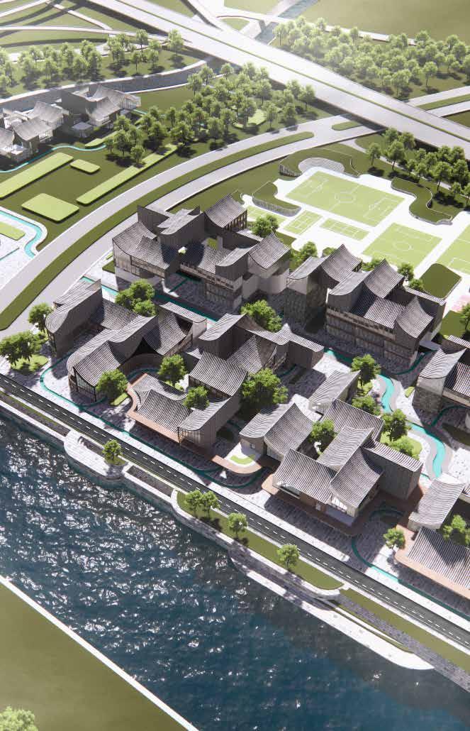 Concept design proposal for Qing River Culture Village including 3D de sign and modelling in Rhino, rendering in Enscape, image production in Photoshop and diagramming in Illustrator