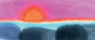 Die vier Motive, feuchter Nebel, Regenschauer, ein Sonnenuntergang über dem Meer und im Wind wogende Wiesenblumen, hat sie in Aquarell und Gouache gemalt. In ihrer künstlerischen Arbeit lässt sie sich meist von der Intuition leiten und vertraut auf den Prozess. „Ich versuche, dem Malen freien Lauf zu lassen und Raum für Überraschungen und Fehler zu geben. Eindrücke, Farben und Gedanken sammle ich überall und füge sie im kreativen Prozess zusammen. Wichtig ist nur, offen und neugierig zu bleiben“, sagt sie.
