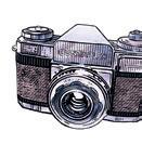 Der Illustrator Martin Mörck besuchte das Museum während des Entwurfprozesses. „Es war eine große Hilfe, die Sammlung vor Ort zu sehen. Das Erste, was mich beeindruckte, war die schiere Menge tausender Kameras und Objekte. Schnell wurde mir klar, dass Olle selbst im Mittelpunkt stehen sollte, aktiv an der Kamera. Gleichzeitig wollte ich das Kleinbildformat als Rahmenmotiv einbeziehen“, so Martin.