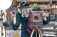 Arkin keskellä seisoo Olle itse Tailboardmatkakameran kanssa 1900-luvun alkupuolelta. Ollen vasemmalla puolella häämöttää Kalart Busch Pressman vuodelta 1948 ja oikealla ruotsalainen ison filmikoon Szabad-kamera.