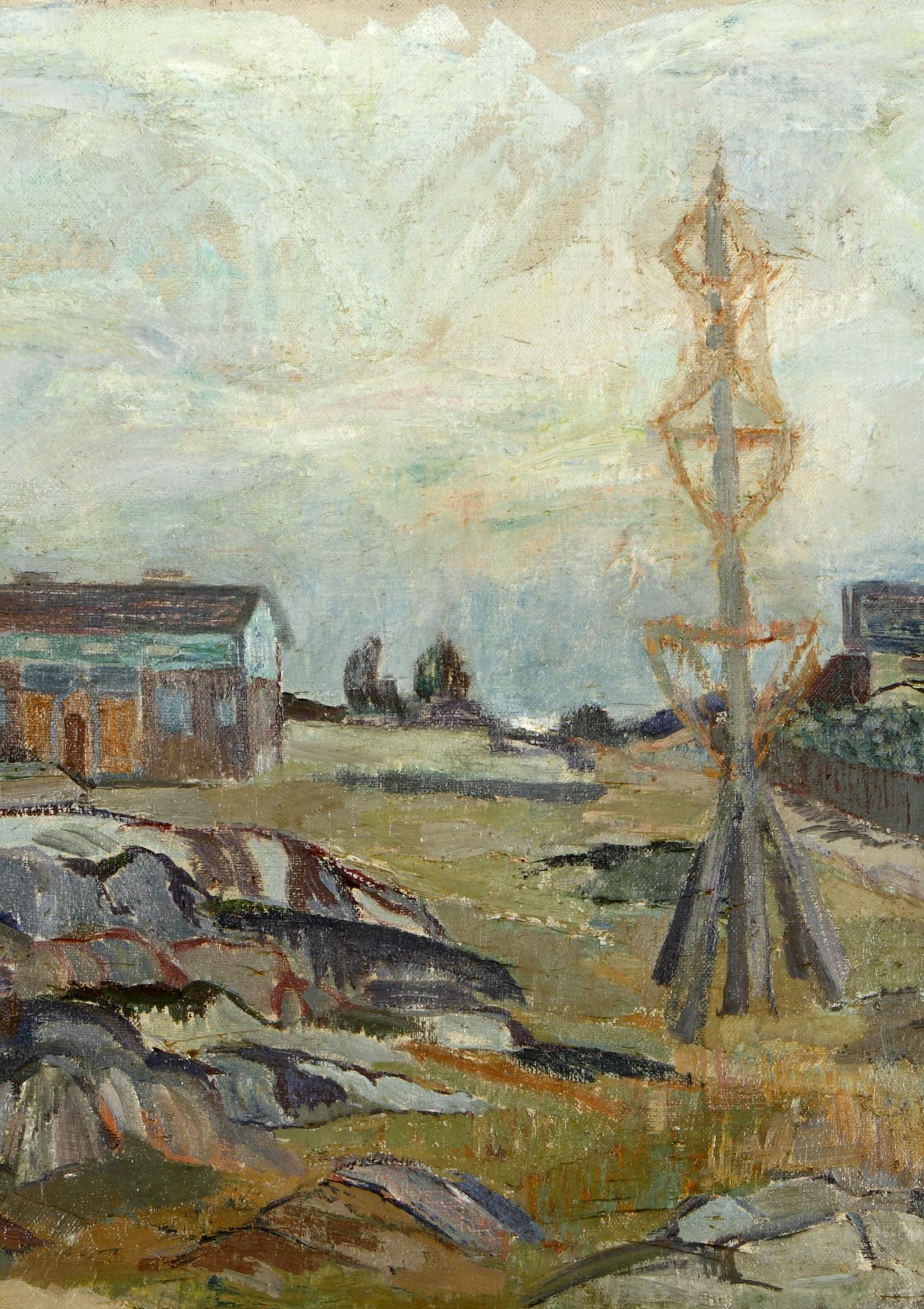Ellen Favorin (1853–1919) kävi taiteilijasiirtokunnassa 1889 ja maalasi taulun Östra hamnen ehkä silloin, vaikka päiväys puuttuu. Neljäs kortti esittää Tove Janssonin (1914–2001) Önningebyn juhannussalkoa Midsommarstång vuodelta 1945.