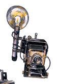 The journey through time continues on the right side of the sheet with a Graflex Speed Graphic, the preferred camera of press photographers from the 1930s to the 1950s. This particular camera was donated in 2019 by the Swedish newspaper Dagens Nyheter as part of the museum’s largest single donation. The composition is completed by a Contaflex, a single-lens reflex camera by Zeiss Ikon, familiar to many everyday photographers.