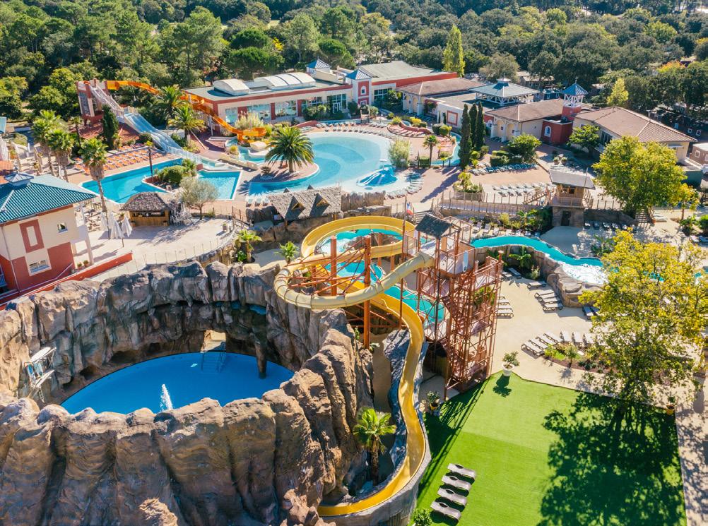 The extensive pool complex is remarkable, featuring several pools, a wild water river, toboggans, slides and a spectacular 'volcano'. In a sunny setting, all are surrounded by ample sunbathing terraces and overlooked by the excellent bar/ restaurant. An 800-seat amphitheatre hosts entertainment. Visit the local resorts of Capbreton and Hossegor, which have a marina and fishing port, museums and beaches, plenty of surf culture, and fantastic seafood.