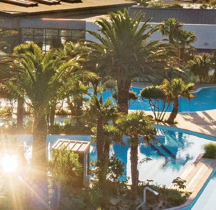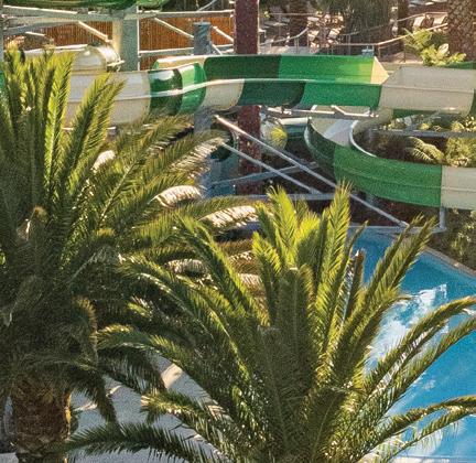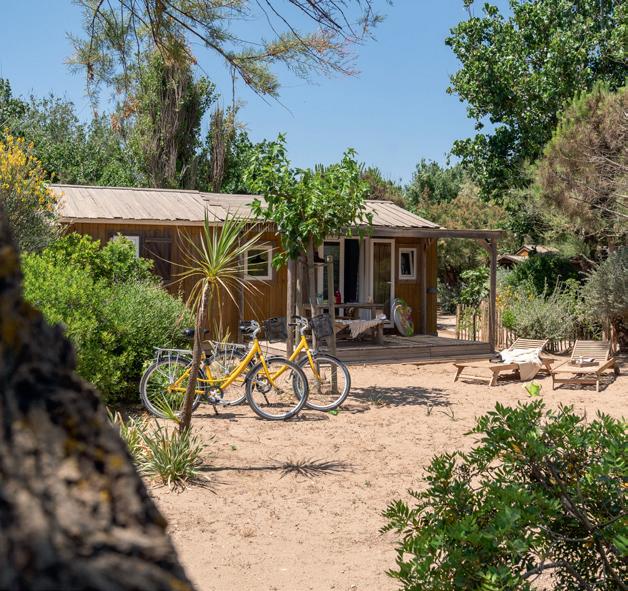 Yelloh! Village le Sérignan-Plage is a lively and vibrant Mediterranean site with direct access to a superb 600-metre sandy beach (including a naturist section). When you arrive at this site, the reception is very modern and e!icient, and a map is printed to show you and direct you to your pitch. This is one of the largest sites I have visited, but as it is spread over such a large area, it does not feel like you are on a large commercial site. Touring pitches, number 293, are separated from an even larger area of mobile homes for rental. Pitches are generous and divided by low hedging and have direct access to the beach. There are approximately 571 mobile homes and chalets for rental, plus some privately owned units and a good number of tour operator pitches.
