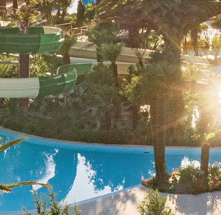 Nine modern sanitary blocks with British-style WCs and washbasins in cabins. Good facilities for children and accessible facilities. Laundry room. Motorhome services. Range of shops. Gas supplies. Bars and a restaurant. Pool complex (heated). The wellness centre includes a jacuzzi, massage room, and beauty room. Play areas. Sports field. Tennis. Sporting activities. Library, games and video room. Hairdresser. Internet café and WiFi. Daily entertainment programme. Bicycle hire. Fishing. Post o!ice. Weather forecasts. No charcoal barbecues. Free WiFi in the bar.