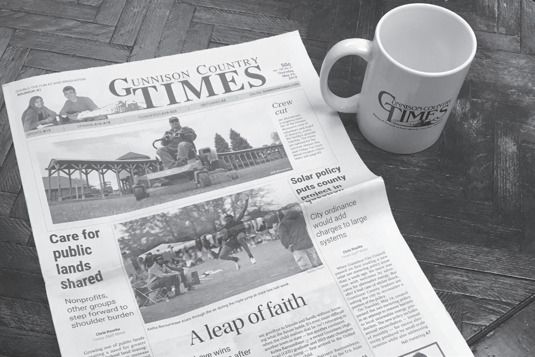 THE GUNNISON COUNTRY TIMES (ISSN 0892-1113) is published weekly by Alan Wartes Media LLC., 218 N. Wisconsin St., Gunnison, Colorado 81230. Periodical postage paid at Gunnison, Colorado. POSTMASTER: Send address changes to: The Gunnison Country Times, 218 N. Wisconsin, Gunnison, CO 81230-0240