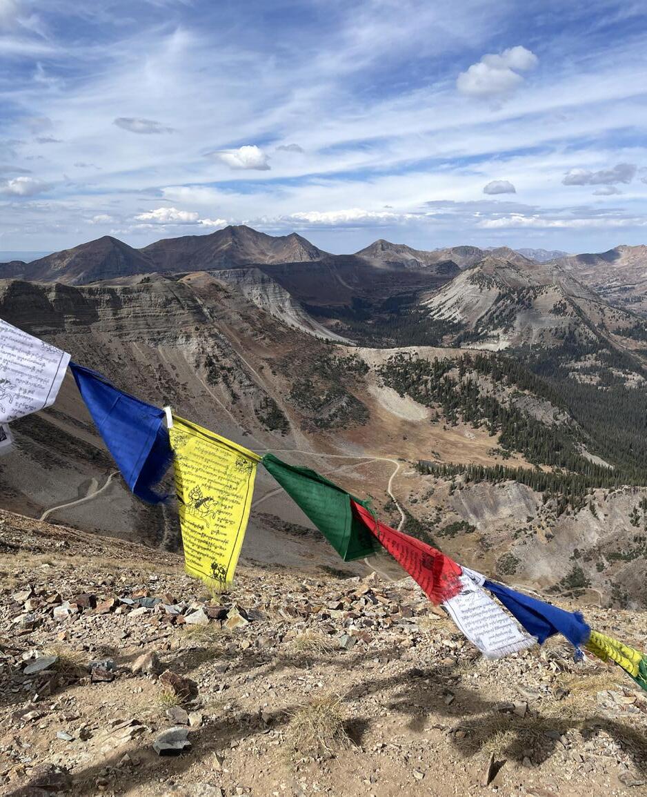 Prayer flags fluttered in the wind atop the Red Lady’s summit on Oct. 13. Despite falling temperatures, the peaks have yet to retain their first layer of fresh snow.
