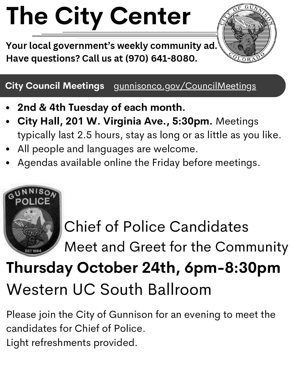 Two finalists have been selected for the soon-to-be vacant City of Gunnison chief of police position. Earlier this year, Chief Keith Robinson announced he will retire in January 2025.
