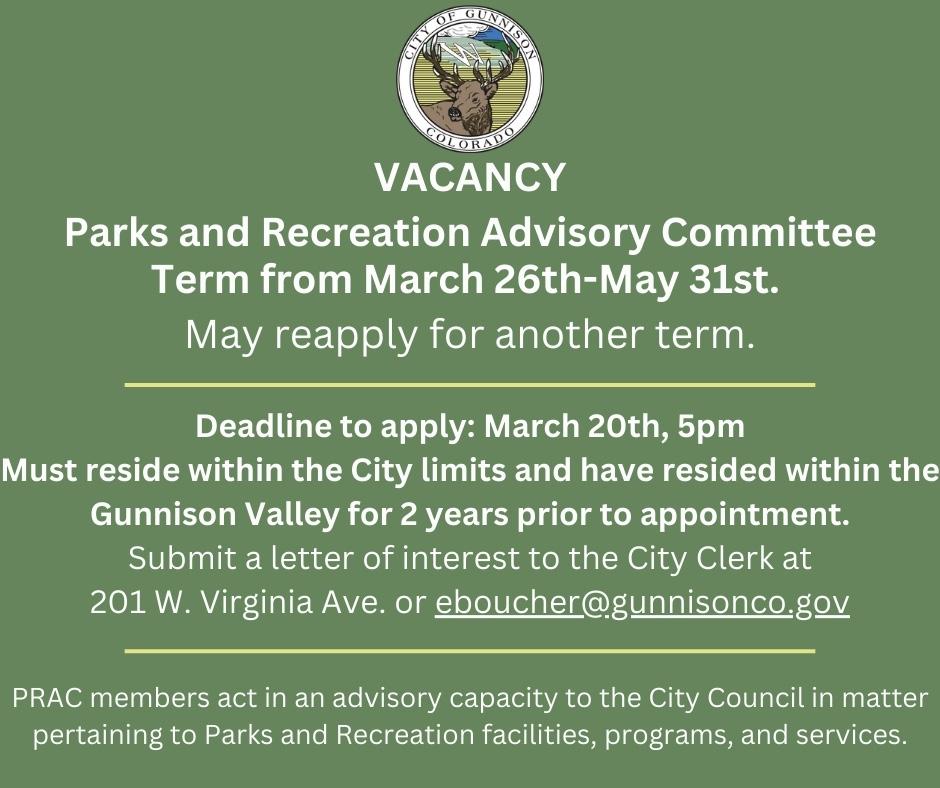 The Gunnison Senior Center & Community Recreation Center is closed until April 30th.