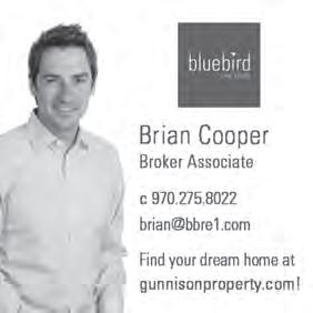 the garage sleeps 6 in the 2 bdrms & half bath. 33000 State Highway 149; $385,000. Spacious 4 bdrm/3 bath, 3480sf home with gorgeous finishes & granite counters. Views of Hartman Rocks, 1 acre, wrap around deck with beautiful backyard and flagstone sitting area with firepit. 188 Crocus Road; $925,000. FEATURED PROPERTY NEW LISTING RIVERF reek. Property has e wer Wate Trai UNDERCONTRACT JOSH TOWNSEND Broker/Owner (970) 209-4479 Honest, Ethical, Professional CLARKE AGENCY REAL ESTATE 241 N. Main St. Gunnison, CO 81230 Office: (970) 641-0511 www.clarkeagency.net View listings at: www.clarkeagency.net AUDRIE TOWNSEND Broker/Owner (970) 209-6208 People’s Choice Award for Best Realtor 2021 & 2022