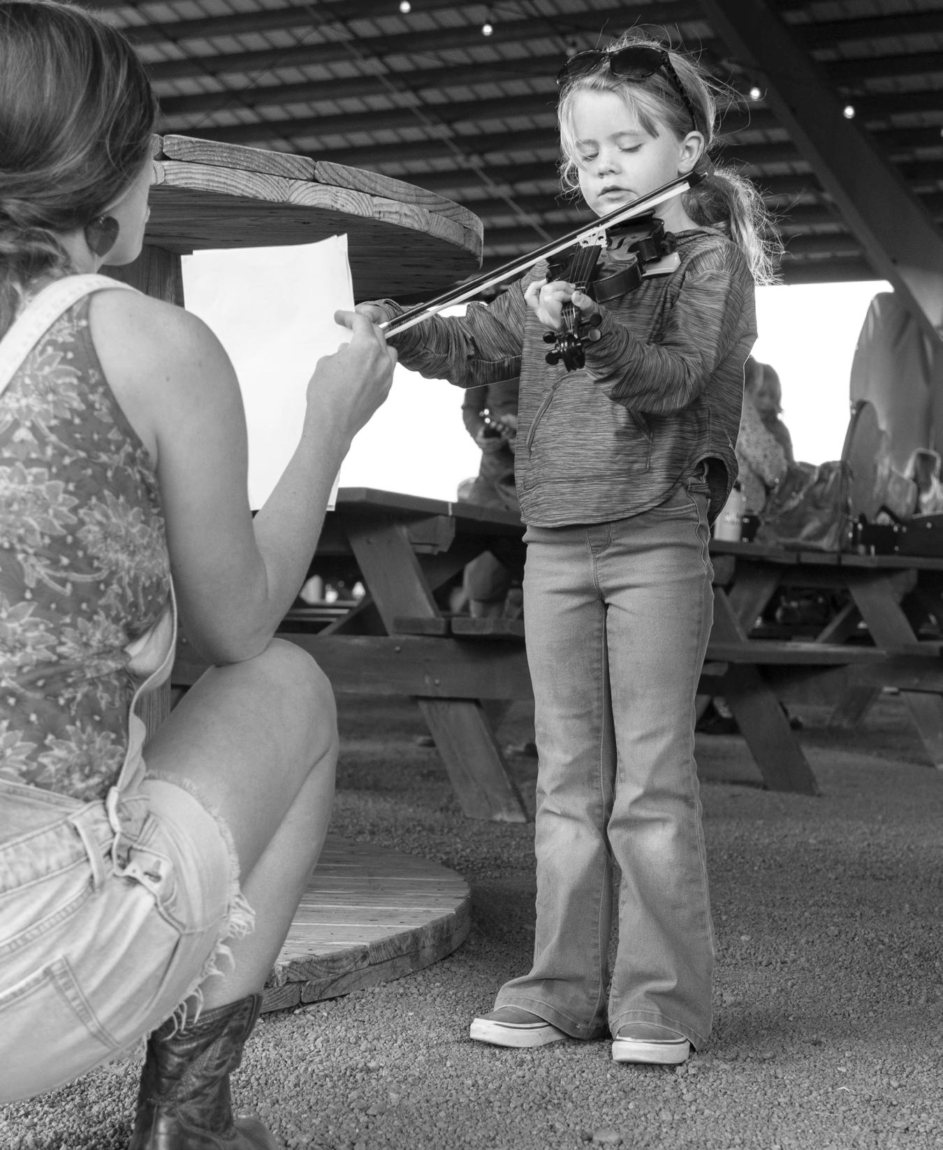 SHOW TUNES: (Left to right) Samantha Lovelace, Sadie Swift, Rose Pankratz, Adelaide Pankratz and Kassidy Robinson practice for their big moment at the Kids of the Gunnison Valley concert at I Bar Ranch on Aug. 15. The girls are not only best friends about the enter the fourth grade, but together, form the band Puguleles. They sang hits from Tom Petty, Imagine Dragons, Miranda Lambert and Ed Sheeran. (Photo by Abby Harrison)