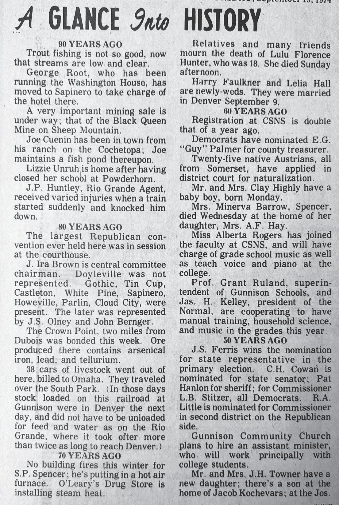 As I look at the Gunnison County and where it was when I first arrived in 1977, how the county used to be, neighbor helping neighbor, walking down the street and knowing everyone, or visiting with friends at a store — it's not the same anymore. We have lost that feeling of a small, friendly community. But that’s what happens. Changes are always happening.