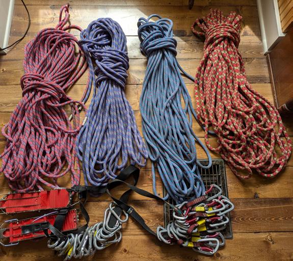 Ropes, Quick Draws, Carabiners, Stirrups, Jumars, Ascenders, Ladders, “Foot Fangs” Crampons, Gri Gri, Ushba, many harnessesincluding big wall harness & chest harness. Call for information & prices. ($750 buys everything!) 970-901-3114.