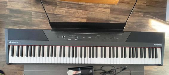 HARDLY USED ALESIS RECITAL 88 KEY KEYBOARD: It has 5 different modes. Piano, electric piano, organ, synth, bass. It comes with a stand and sustain pedal. It is a great keyboard for beginners. $100 obo. 970-9016094.