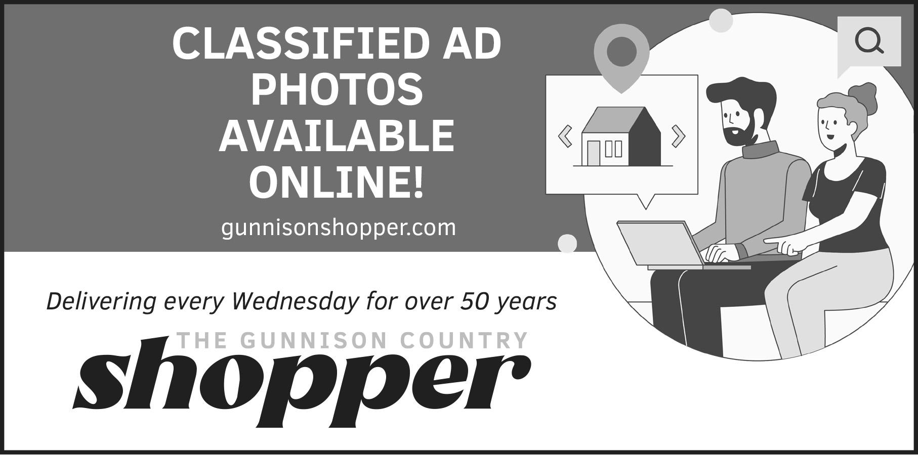 SUBMIT YOUR AD AND A PHOTO ONLINE AT GUNNISONSHOPPER.COM OR EMAIL SHOPPER@