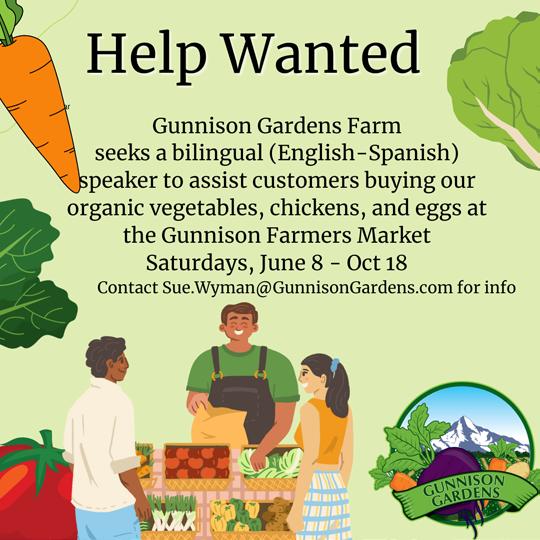 directly at 970-765-3079 or drop off a resume at 401 W. Tomichi Ave., Gunnison.