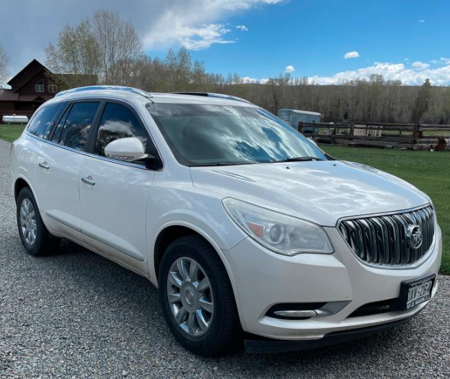 2013 BUICK ENCLAVE: Leather sport utility, $10,000. All the bells and whistles AWD, V6, 6-speed automatic. Four bucket seats plus third row bench seat. Towing added, runs great, no mechanical issues. Mileage 135,000 total, driven by senior woman last six years or 75,000 miles, well-maintained, new interstate battery, good snow tires. 970-964-7621.