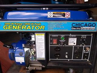 PORTABLE GENERATOR: Chicago Electric (Harbor Freight) gasoline generator. 6.5 hp/3000 watts, new condition, less than one hour run time, $350. Text 970-2090397 for more information.