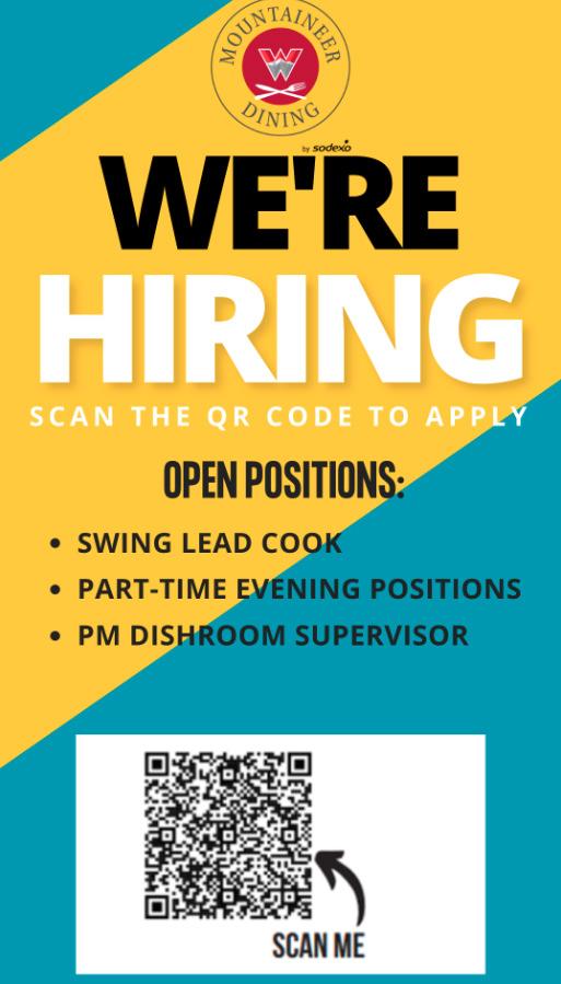 COME JOIN THE MOUNTAINEER DINING TEAM: Competitive pay, full benefits and holidays off.