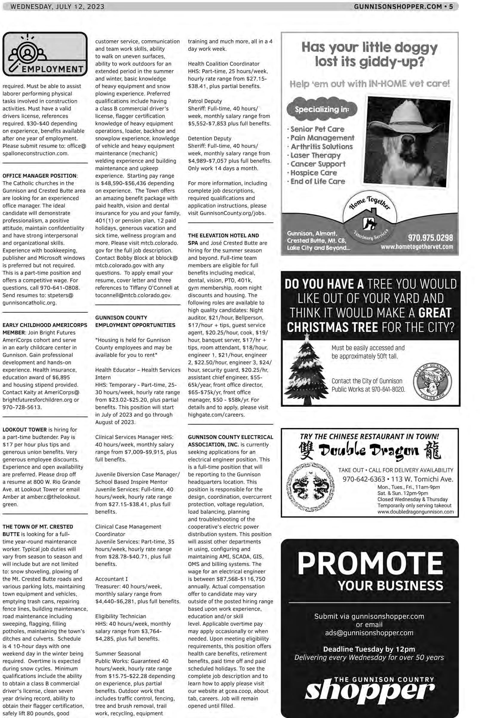 SUBMIT AN AD AND A PHOTO ONLINE AT gunnisonshopper.com